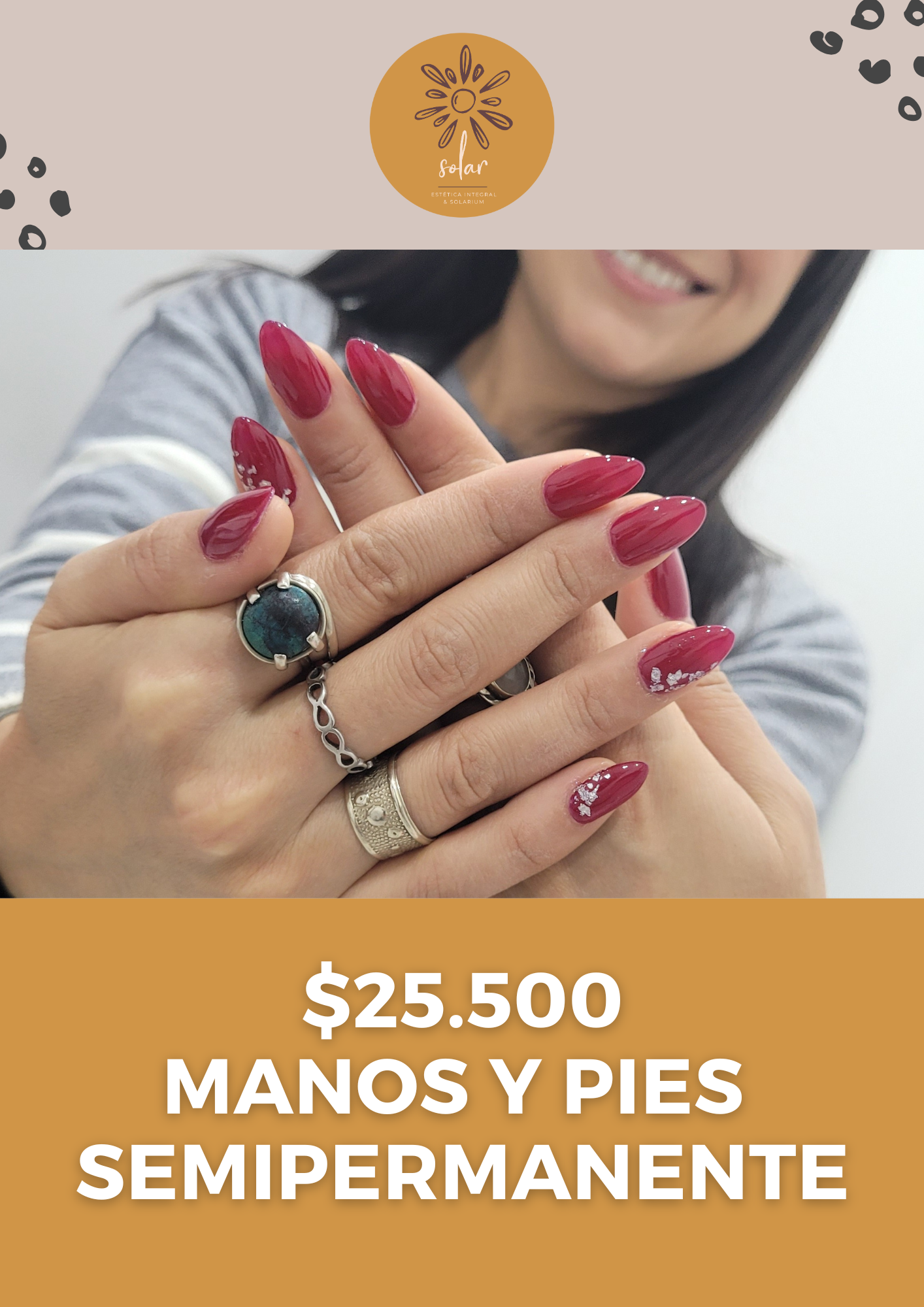 Manos y pies semipermanente por un increible valor de $25.500 en efectivo. Consulta también por otros servicios de belleza para tus manos y pies. Manos y pies impecables con acabado perfecto. Reservá hoy y lucí uñas soñadas.